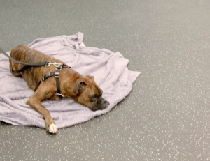 We had a great orientation today and the June Pet Partners Handler Workshop is now full. We can’t have many people in the room but will certainly have as many as we can accommodate. I invited one of the students to bring her dog Mildred to share with the others what she has been doing thus far to prepare for the course. Mildred was the perfect example of how even a young Boxer can learn to Go to her Place and Chill!