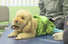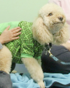 So we could take them off of course! Pet Partners does not approve of dogs wearing clothes or costumes when working as therapy dogs, but sometimes we use clothes as part of the therapy session.